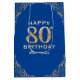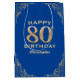 80th Birthday Party Blue and Gold Glitter Medium Gift Bag