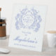 80th Birthday Party Blue Floral Crest Welcome Pedestal Sign