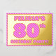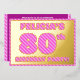 The front of this bold and fun eightieth birthday celebration/party foil announcement card features an editable name, a large number “80th”, the message “BIRTHDAY PARTY!”, and a border, all featuring a girly dark pink and light pink lines pattern. The back features personalised details about the event, such as the date, time, place/venue, and any other important information. Customisable invitations like these might be used to invite attendees to a birthday gathering being held to honour somebody’s 80th birthday. [~Z0000597]