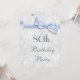 Womens' elegant 80th Birthday Party invitations. Woman's eightieth / eighty years old birthday party invites. Beautiful white damask pattern background with a pretty, stylish blue bow and ribbon image. These glamourous, chic, classy invites are beautifully sophisticated and are decorated / printed on both sides. PLEASE NOTE: All invites on Zazzle have flat printed images. Bow and ribbon images purchased from digital-designs-by-elena. If you need any assistance customising your invitation please contact me through my store and I will be happy to help.