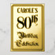 The front of this fancy eightieth birthday celebration foil invitation/announcement card design features the message “80th Birthday Celebration” in elaborate script-style text. It also has a customisable name. The back features personalised details about the event, such as the date, time, venue/location, and any other relevant information. Elegant, elaborate, editable invitations like these might be used to invite guests to a birthday party being held in celebration of somebody’s 80th birthday. [~Z0000596]