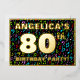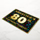 The front of this joyful eightieth birthday celebration/party foil invitation card design features a personalised name, a large number “80th”, the message “BIRTHDAY PARTY!”, and a border. The background of the front features an upbeat, multicolored pattern of musical symbols. The back features personalised details about the event, such as the date, time, venue, and any other information that may be important. Customisable invitations like these might be a fun way to invite attendees to a birthday party/gathering being held in celebration of somebody’s 80th birthday. These might be extra special if that person is a composer, a songwriter, a musician, a singer, or a lover of music. [~Z0000601]