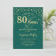 80th Birthday Party Invitation - Gold Green