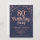 Elegant design in navy blue and faux glitter rose gold. Features stylish script font and confetti. Message me if you need custom age.