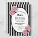 80th birthday party pink roses black white stripes invitation
