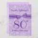 This design with its purple faux printed bow and muted purple damask background is an elegant way to invite folks to an 80th birthday celebration. All text is totally customisable. You can experiment with different paper types by clicking on the "Invitation Options" tab on the upper right hand corner. I recommend the ice hued metallic paper which will give your invitation a festive shimmer and shine.