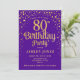 80th Birthday Party - Purple & Gold Invitation