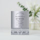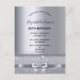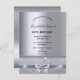 A modern, stylish and glamourous invitation for a woman's 80th birthday party. A faux silver metallic looking background with an elegant faux silver bow, ribbon and sparkle. The name is written with a modern black hand lettered style script. Templates for your party details.