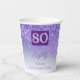 80th Birthday Party Sparkle Purple Glitter Paper Cups