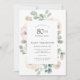 Honour a special woman with this elegant 80th Birthday party invitation. White roses nestled in soft sage green eucalyptus leaves form a modern botanical frame. All of the text can be edited, so you can describe your special celebration perfectly