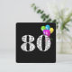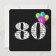 Bold black and white text on black background with colourful party balloons for 80th birthday party invite.