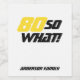 This modern and elegant wine label is a great gift idea for a person who loves wine and is celebrating the 80th birthday. A motivational and funny text 80 So what! is great for a person with a sense of humour. Birthday present for a man. The text is in yellow and black colour. You can change the age number and the text.