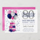This fabulous 80th birthday save the date card featuring a 2-layer pink and silver cake with blue roses and pink, navy blue and silver balloons, the number 80 in silver and shiny blue confetti would be perfect for celebrating your loved one turning 80. It is traditional and classic while being fresh, modern and contemporary. The back is a coordinating pink foil.
