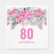 Elegant design for a 80th birthday party with a pink "80" and scripted "fabulous" embellished by a feminine floral design on a white background. Customise age, text and background colour.