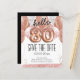 hello 80 birthday party save the date pink glitter balloons. Save the date rose gold number balloons with faux pink glitter. Girly, elegant, trendy. Easy to adjust template.