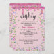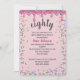 Dripping pink icing with colourful candy sprinkles for a 80th birthday party invite.