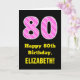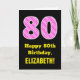 80th Birthday: Pink Stripes and Hearts "80" + Name Card