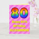 80th Birthday: Pink Stripes & Hearts, Rainbow # 80 Card