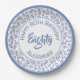 80th Birthday Random Number Pattern Blue/White Paper Plate