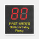 This silly and fun birthday paper napkin design features a large number "80" with a red seven segment digital display style look, along with an editable name and the message "80th Birthday Party!" in geeky retro style yellow text, on a black coloured background. Birthday themed paper napkins like this might be fun to use at a party being held to celebrate somebody’s 80th birthday. [~Z0000388]
