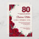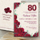 80th Birthday - Red Peonies Linen 80 Years Invitation