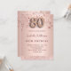 A modern, stylish and glamourous invitation for a 80th birthday party. A rose gold gradient background with rose gold and pink stars. The name is written with a modern dark rose gold coloured hand lettered style script. Personalise and add your party details. Number 80 is written with a balloon style font, script.