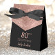 This fabulous modern 80th Birthday Rose Gold Glittery Thank You favor box with sparkling rose gold faux foil, the birthday girl's name in a trendy script font, and tied with an elegant black bow would be perfect for your event. It would be great for a candy station, on a thank you gift table, or at each place setting with a favor. Be sure you order enough for all your guests.