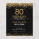 Elegant Faux gold glitter with shimmering confetti highlights on the top and bottom border. All text is adjustable and easy to change for your own party needs. Great elegant 80th birthday template design.