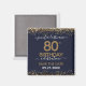 Elegant Faux gold glitter with shimmering confetti highlights on the top and bottom border. All text is adjustable and easy to change for your own party needs. Great elegant 80th birthday template design. Save the date magnet reminder.