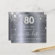 An elegant Save the Date card for a 80th birthday party. A modern faux silver looking background, decorated with faux glitter dust. Personalize and add a date and name/age. The text: Save the Date is written with a large trendy hand lettered style script. Number 80 with a balloon style font.