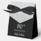 This fabulous modern 80th Birthday Silver Glitter Thank You favor box with sparkling silver glitter, the birthday girl's name in a trendy script font, and tied with an elegant black bow would be perfect for your event. It would be great for a candy station, on a thank you gift table, or at each place setting with a favor. Be sure you order enough for all your guests.