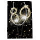 80th Birthday Sparklers on Black With Stars Medium Gift Bag