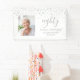 Help her celebrate her 80th birthday in style with this simple but elegant banner, featuring faux silver triangular confetti sifting down on her photo and the word "eighty" in silver grey handwriting font on a white background. Easily replace the sample image with a photo of your choice. Personalise the text with the name of the honoree in silver grey sans serif font, along with the occasion and date below in smaller grey type.