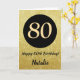 80th Happy Birthday Black and Gold Glitter Card