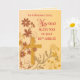 A Catholic Nun will certainly like this wonderful religious design, perfect for her Anniversary. The sister's 80th Jubilee will be happier with your kind words. An amazing golden cross with leaves and flowers to let her know her work is appreciated.