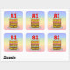 This joyful and fun birthday themed square sticker design features a cartoon-style depiction of a three-tier birthday cake having number-shaped candles on top showing the age “81“, along with the message “HAPPY 81ST BIRTHDAY,”, and a personalised recipient name. The background has a multi-colour pastel rainbow spectrum inspired gradient pattern. Upbeat birthday themed stickers like these might be used or given out at a party for somebody who is celebrating their eighty first birthday, or perhaps used when wrapping gifts or preparing invitations for such an event. [~Z0000624]