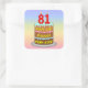 81st Birthday: Fun Cake and Candles + Custom Name Square Sticker