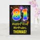 81st Birthday: Fun Fireworks Pattern + Rainbow 81 Card