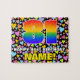 This fun and exciting birthday-themed jigsaw puzzle design features a large number “81” having a multicolored rainbow spectrum inspired gradient pattern. It also features the message “HAPPY 81st BIRTHDAY,”, and a personalised recipient name. The background features a joyful pattern of loving heart shapes having various sizes and colours. An eye-catching, editable birthday puzzle like this might be given to celebrate somebody’s eighty-first birthday. [~Z0000611]