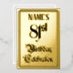 The front of this elaborate eighty-first birthday party foil announcement card design features the message “81st Birthday Celebration” in fancy script-style text. It also features a custom name. The back features personalised details about the event, such as the date, time, venue, and any other important information. Ornate, opulent, customisable invitations like these might be used to invite guests to a birthday party being held in celebration of somebody’s eighty-first birthday. [~Z0000596]