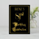The front of this opulent, elegant, foil eighty-first birthday celebration/party invitation design features the message “81st Birthday Celebration” in luxurious script-style text. It also has a personalised name. The background of the front is coloured black by default (although it can be customised to a different colour). The back features personalised details about the event, such as the date, time, location, and any other information that may be relevant. Luxurious, fancy, personalised invitations like these might be used to invite guests to a birthday celebration being held in celebration of somebody’s 81st birthday. [~Z0000589]