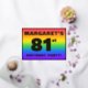 The front of this upbeat and eye-catching eighty-first birthday party/celebration foil invitation card design features an editable name, a large number “81st”, the message “BIRTHDAY PARTY!”, and a border. The background of the front features a vibrant, colourful, rainbow spectrum inspired gradient pattern. The back features personalised details about the event, such as the date, time, venue, and any other important information. Personalised invitations like these might be a fun way to invite attendees/guests to a birthday gathering being held to honour somebody’s 81st birthday. [~Z0000599]