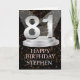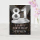Make an 81st birthday card extra special by adding a name. The number 81 on a plinth with spotlights shining to light it up!