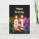 A birthday cup-cake with candles. The candles are made up of the number 81, for an 81st birthday. A birthday card suitable for everybody.