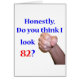 Honestly, Do you think I look 82? Humourous design that warns you with a fist that your answer had better be a big fat NO! Makes a great 82nd birthday gift for the 82 year old who is a little sensitive about their age.
