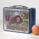 This is a standard metal lunchbox that appears to work just fine. We designed this box ourselves with an uploaded photo and custom text on the front and back. It looks absolutely beautiful except the front of the lunchbox is not centered like it shows in the photo. The print borders don't align with the inset flat part of the box where the preview photo online showed it perfectly centered in there. The back looks nice and centered though.