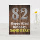 This American Old West inspired and country inspired birthday themed greeting card design features a large rustic look number "82", the message "Happy 82nd Birthday,", a custom name, and a faux/imitation wood grain inspired look pattern background. The inside has a personalised birthday greeting message, or could perhaps be cleared and left blank if a message is to be written by hand instead. A customised birthday greeting card like this might be a fun way to deliver birthday greetings to somebody who is celebrating their eighty-second birthday. [~Z0000469]
