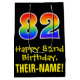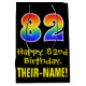 This fun, exciting, and colourful birthday themed giftbag design features a large number "82" with a rainbow spectrum gradient style pattern, along with the message "Happy 82nd Birthday,", and an editable recipient name. The background is coloured black. A fun giftbag like this might be used when wrapping presents being given to somebody in celebration of their 82nd birthday. [~Z0000512]