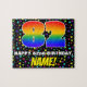 This joyful and eye-catching birthday jigsaw puzzle design features a large number “82” having a multicolored rainbow spectrum inspired gradient pattern. It also features the message “HAPPY 82nd BIRTHDAY,”, and an editable recipient name. The background features a fun, colourful pattern featuring star shapes of various sizes. A vibrant, personalised birthday puzzle like this might be used to acknowledge somebody’s eighty-second birthday. [~Z0000607]