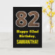 82nd Birthday: Name, Faux Wood Grain Pattern "82" Card